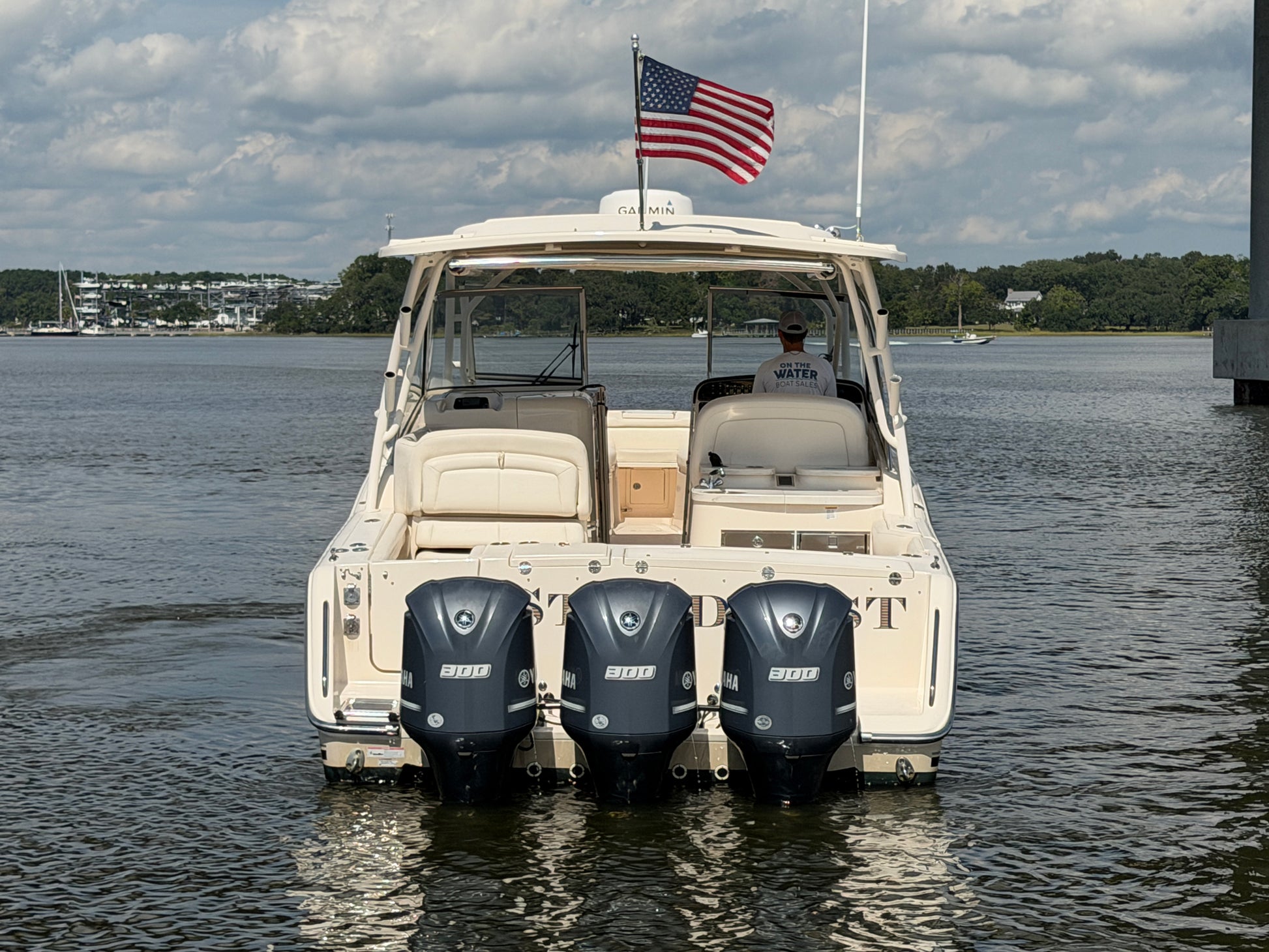 The 2017 Grady-White Freedom 335 is a premier offshore dual-console that blends luxury, versatility, and performance. Powered by triple Yamaha 300 hp 4.2L outboards, this meticulously maintained Freedom 335 delivers an impressive combination of speed, reliability, and fuel efficiency on the water.