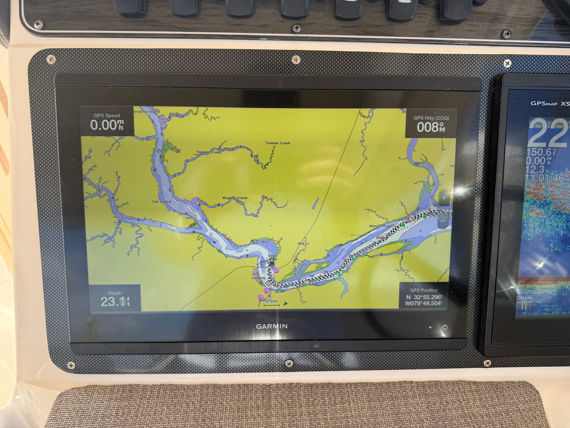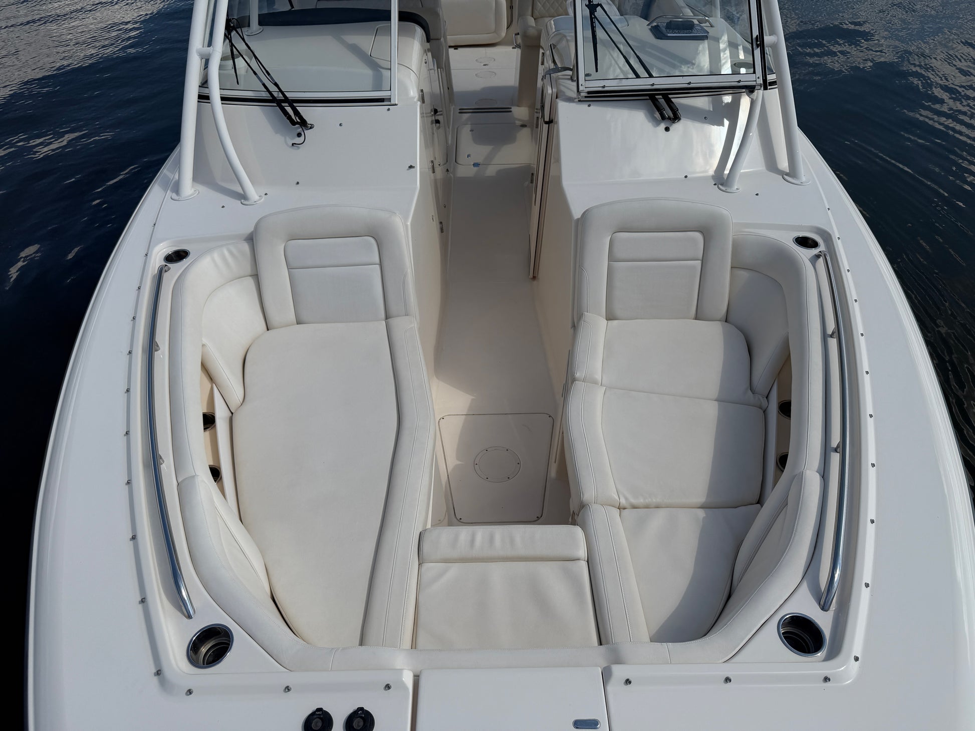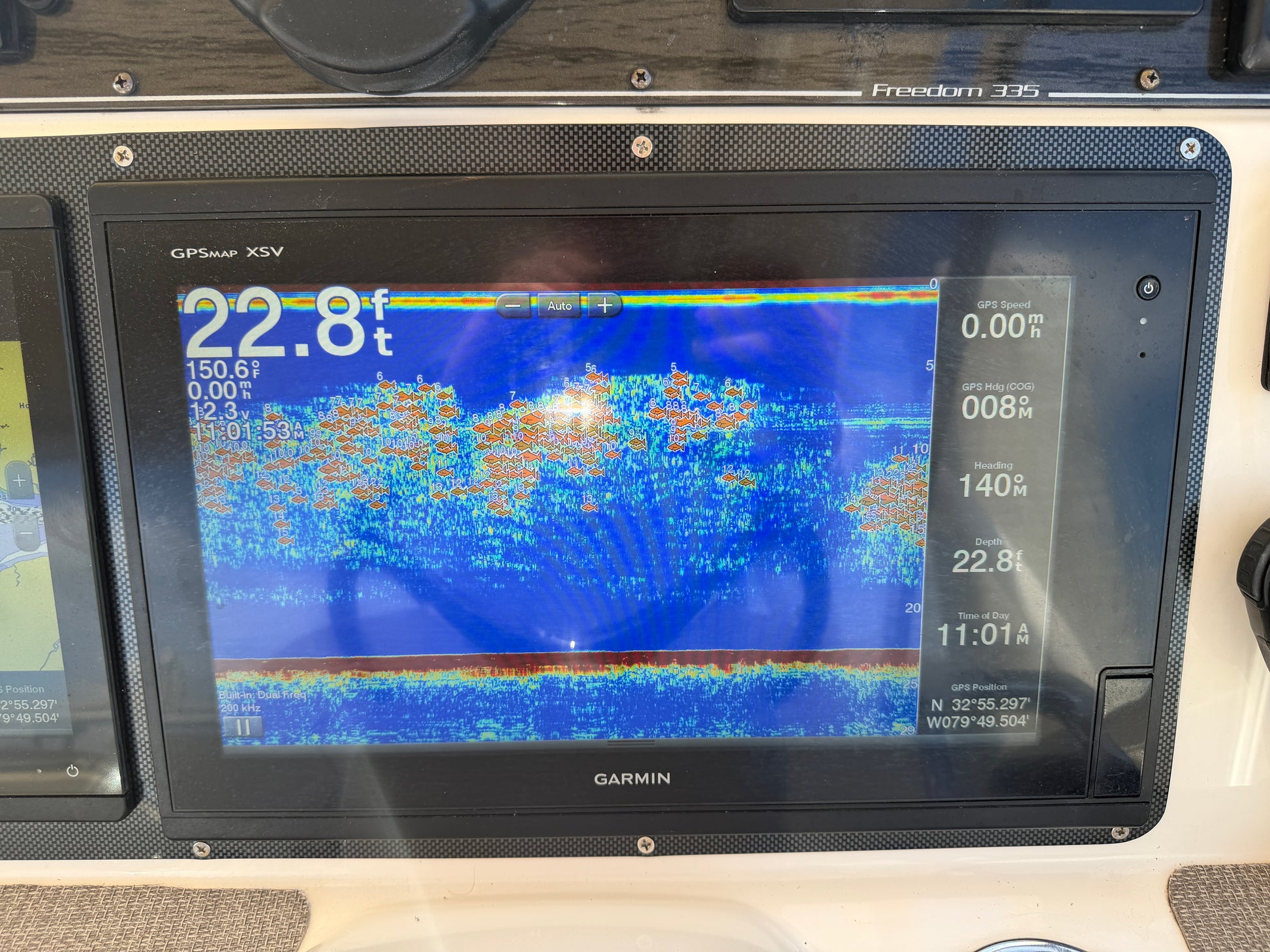 At 33’6” in length with a wide 11’7” beam, it offers outstanding stability and plenty of deck space for fishing, entertaining, or family cruising. Highlights include plush seating, a deluxe helm with electronics, including Garmin 8616XSV and 7616XSV MFDs, Garmin Radar, Garmin VHF, Garmin Autopilot, and Multi-Zone Fusion Stereo System. The Freedom 335 features a well-equipped galley, a spacious air-conditioned cabin with a berth for overnight trips, and a separate head. The deep-V hull ensures a smooth, dry ride in varying sea conditions, while the triple Yamaha 300s provide effortless handling and confidence offshore.
