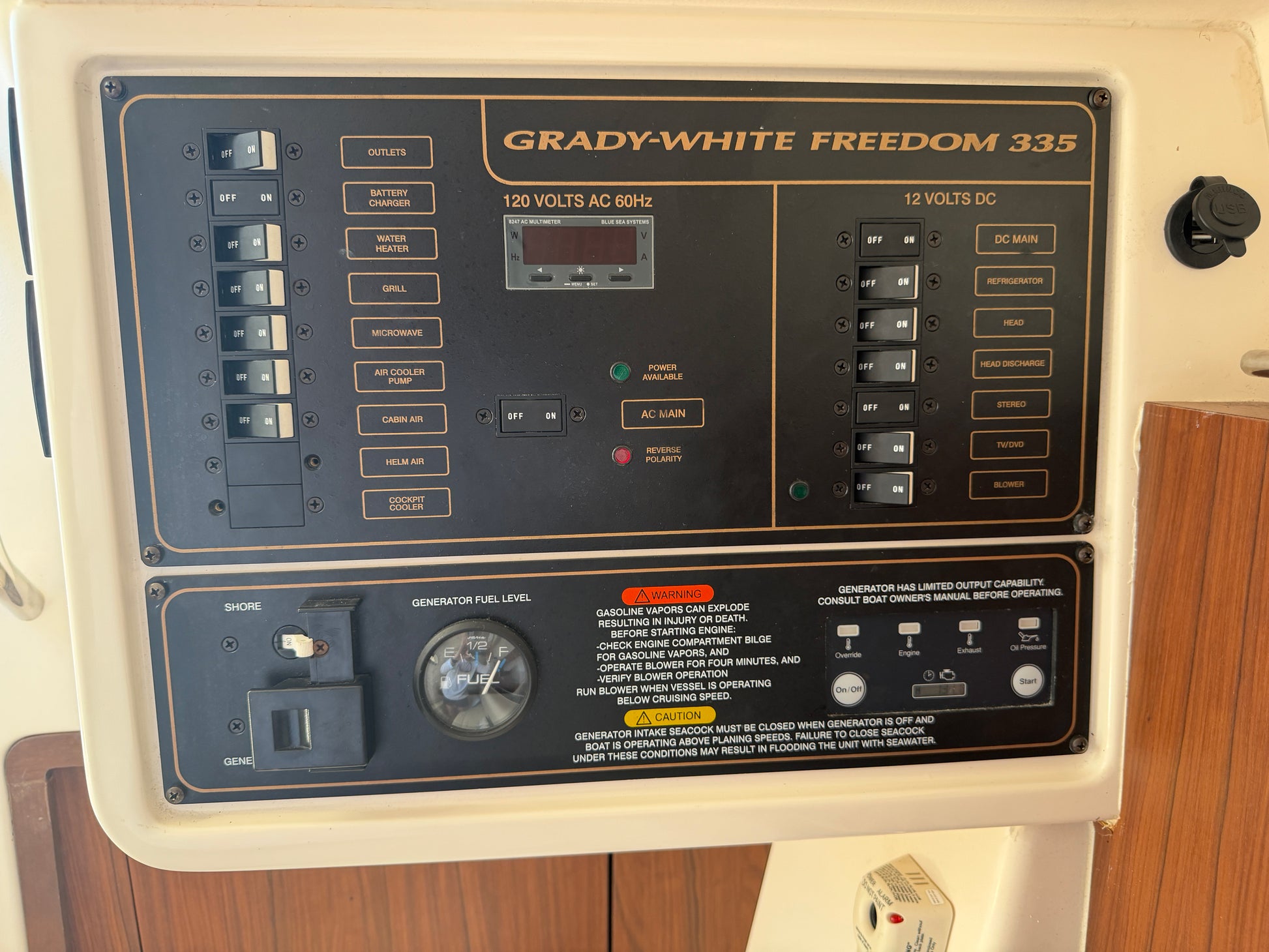 This meticulously maintained Grady-White Freedom 335 is up to date on Yamaha engine service and Fischer Panda Diesel generator maintenance, and has just undergone a professional detailing.