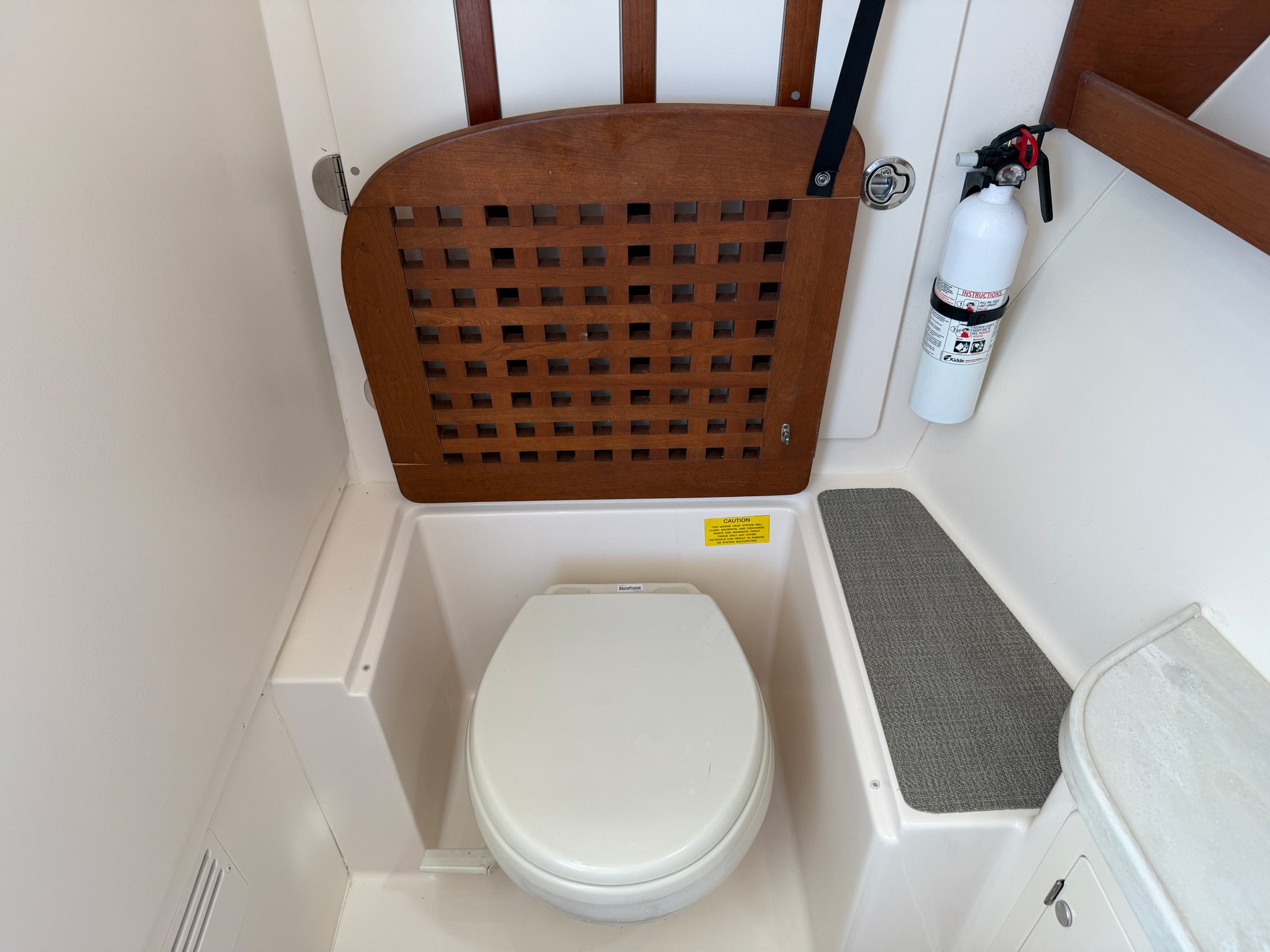 - Starboard console w/VacuFlush® head (10-gallon) (38 l), shower, sink, drawers, lighting & bulk storage