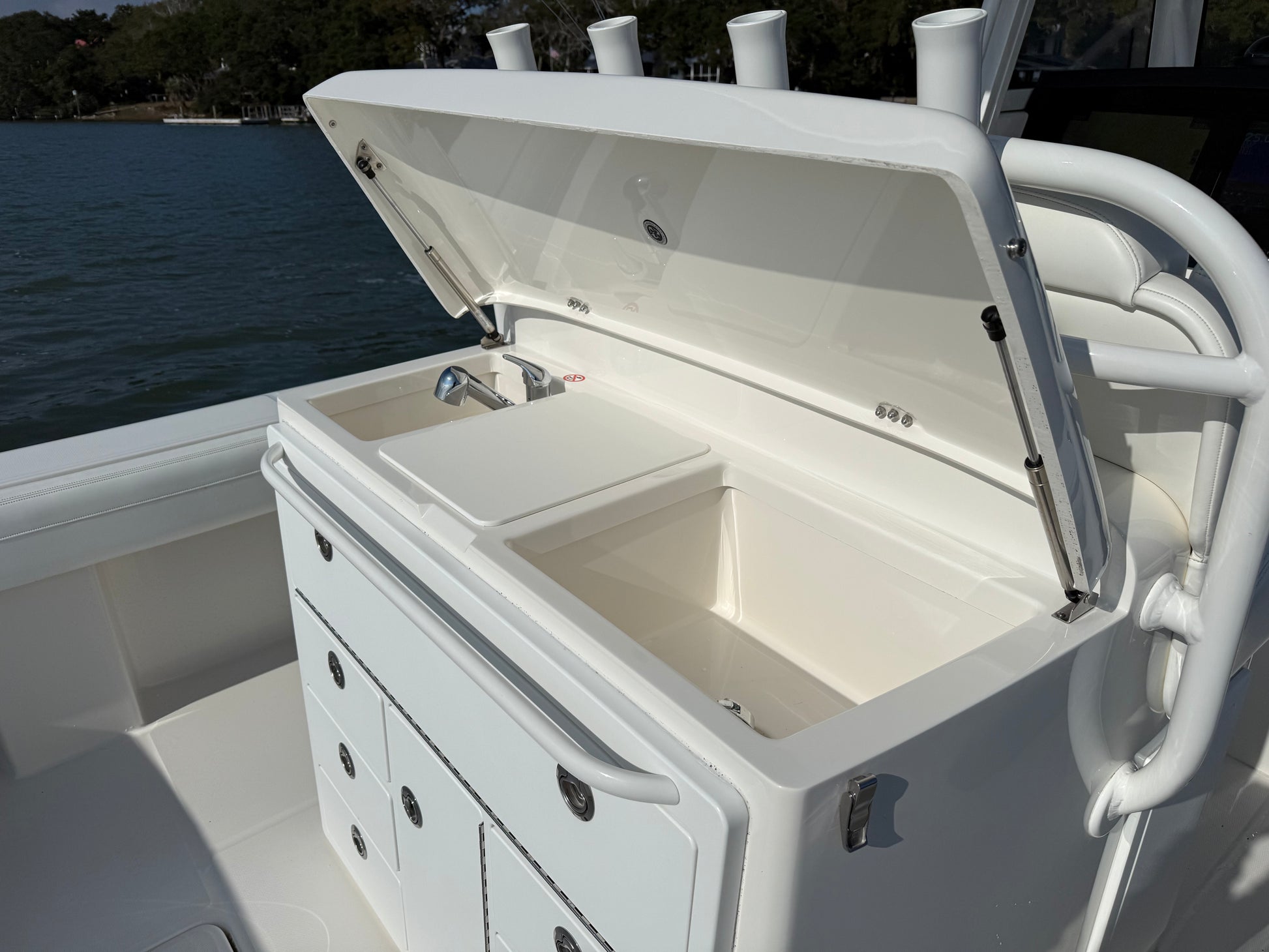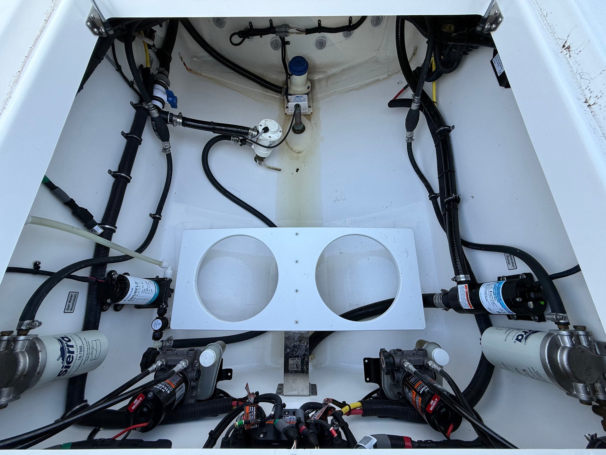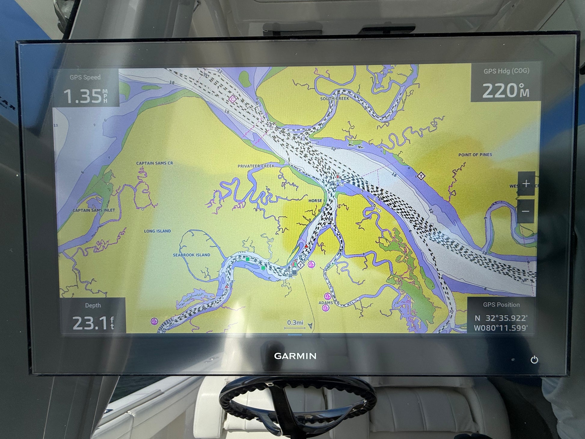 Electronics Package includes (2) Garmin 16" GPS/Chartplotter/Fishfinders, Garmin VHF Radio, Garmin 4' Open Array Radar, Polk Audio Upgraded Bluetooth Stereo System, and 7" Yamaha Digital Gauge Display.