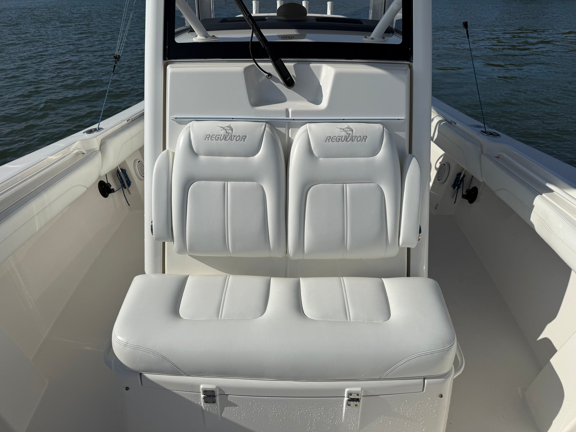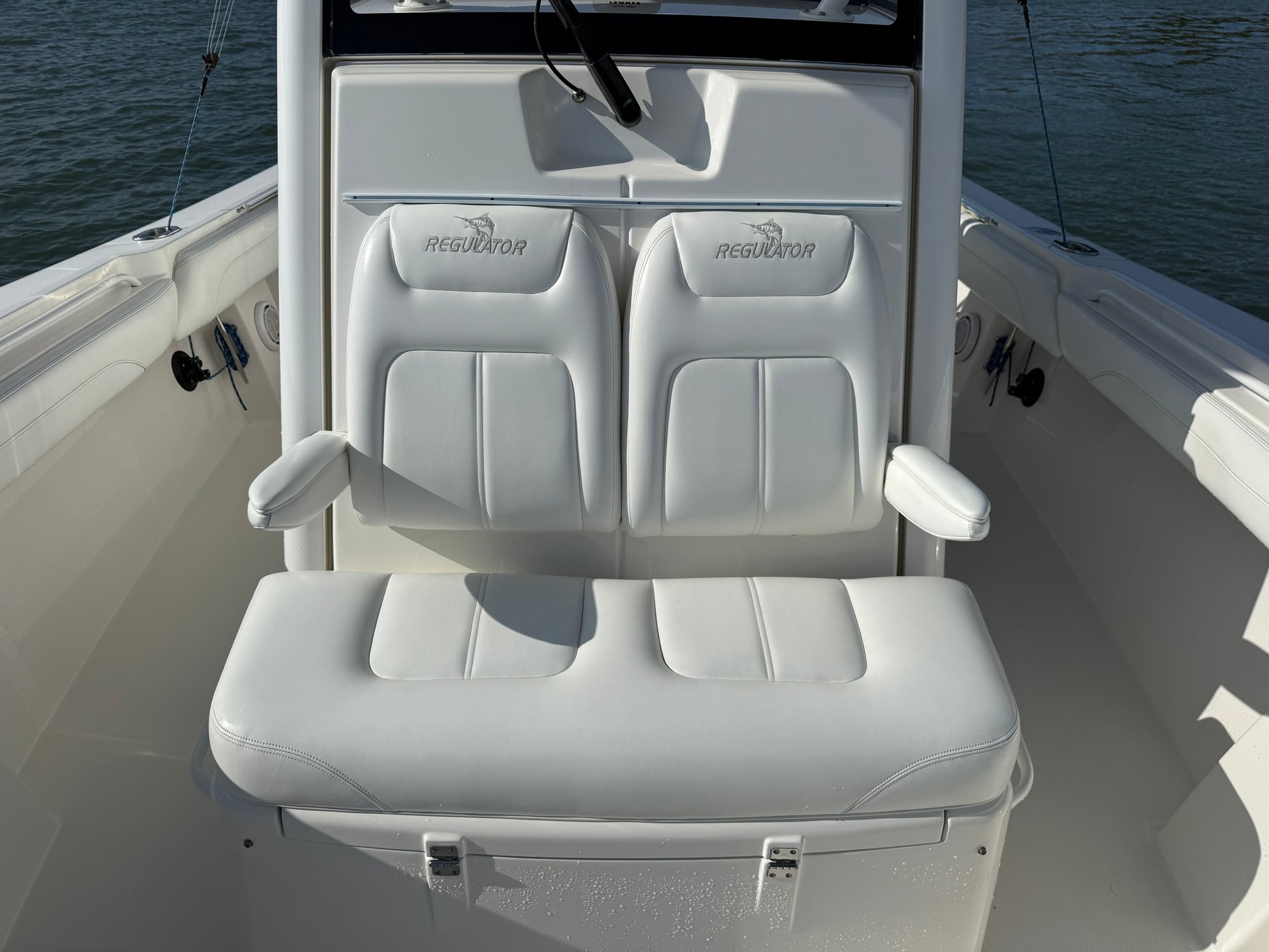 2020 Regulator 31 powered by twin Yamaha F300NCAs with Yamaha Helm Master, Digital Controls, and Yamaha Joystick. Price also includes a Magic Tilt Triple Axle Aluminum Trailer.