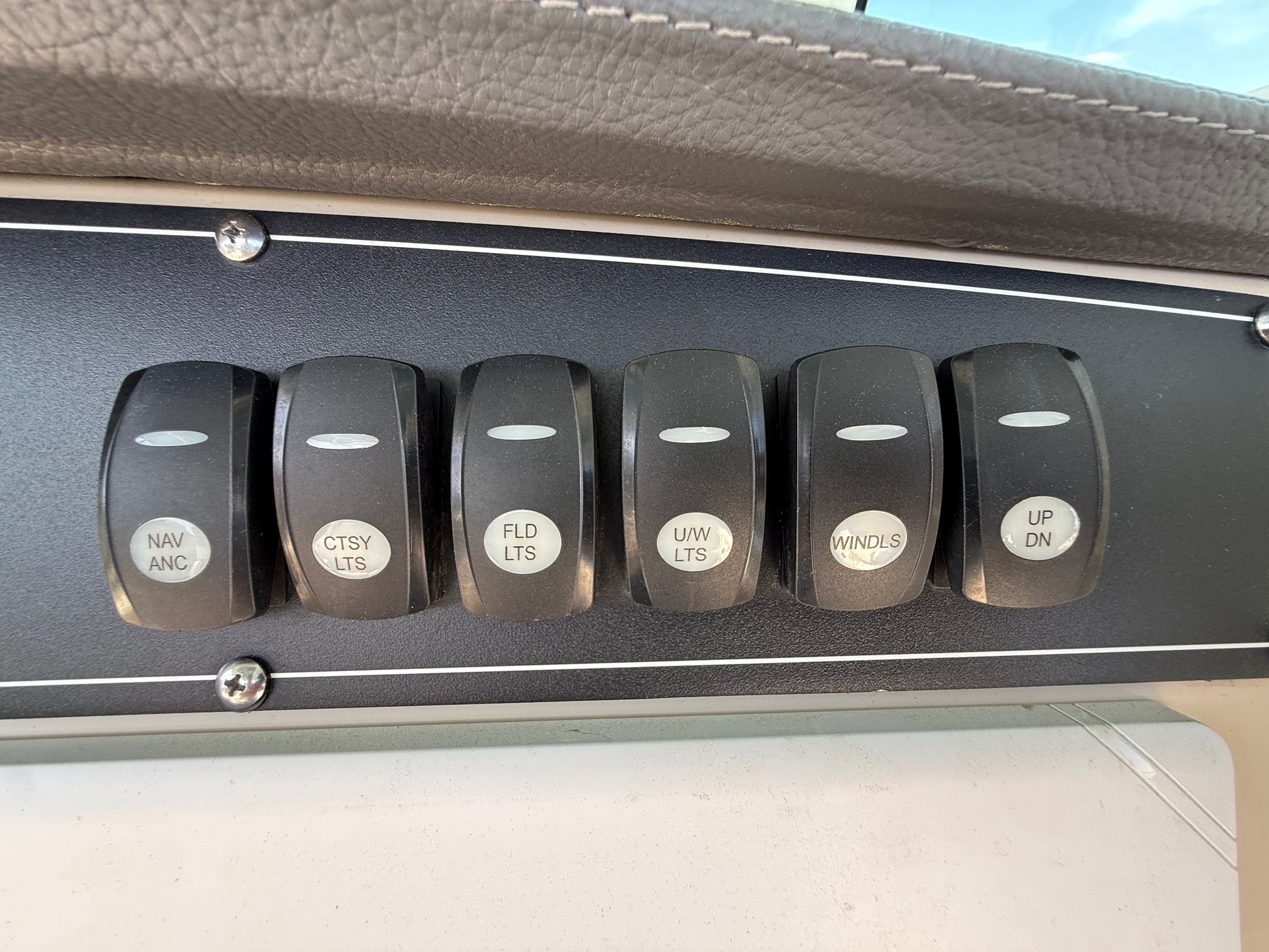 - Drink holders; (2) in bow, (2) in hawse pipes, (2) in leaning post, (2) in console