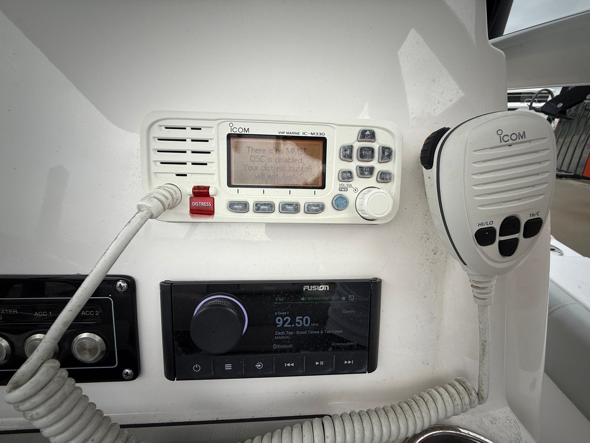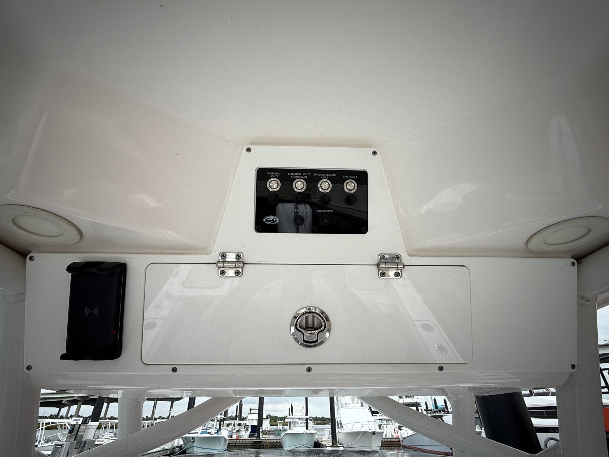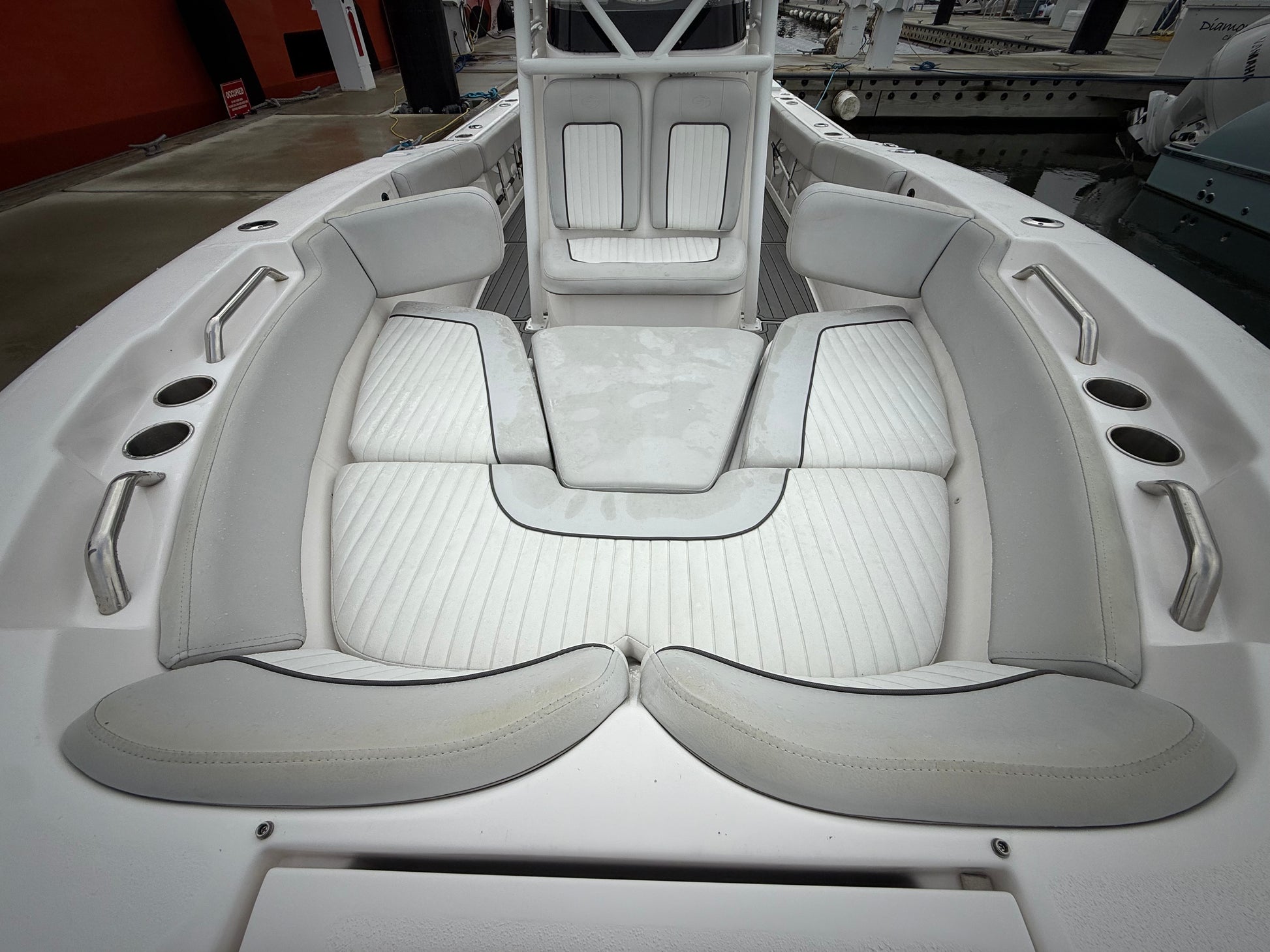 Electronics Package includes Garmin 8612XSV GPS/Chartplotter/Fishfinder, Icom M330 VHF Radio, Fusion Bluetooth Stereo System, (6) Fusion Speakers, Yamaha CL5 Multifunction Gauges, and Wireless Cell Phone Charger.